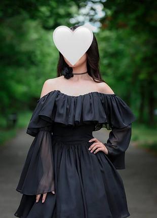Коротка чорна сукня, з відкритими плечима 🖤 Ог: 83см От: 60 см Матеріал : Креп шифон *одягнута 1 раз