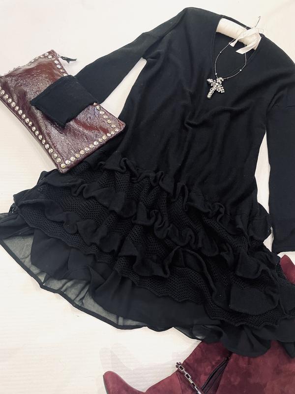 Классное платье от Twin•Set , 50% шерсть, фасон свободный , внизу рюши, v-образный вырез, размер М