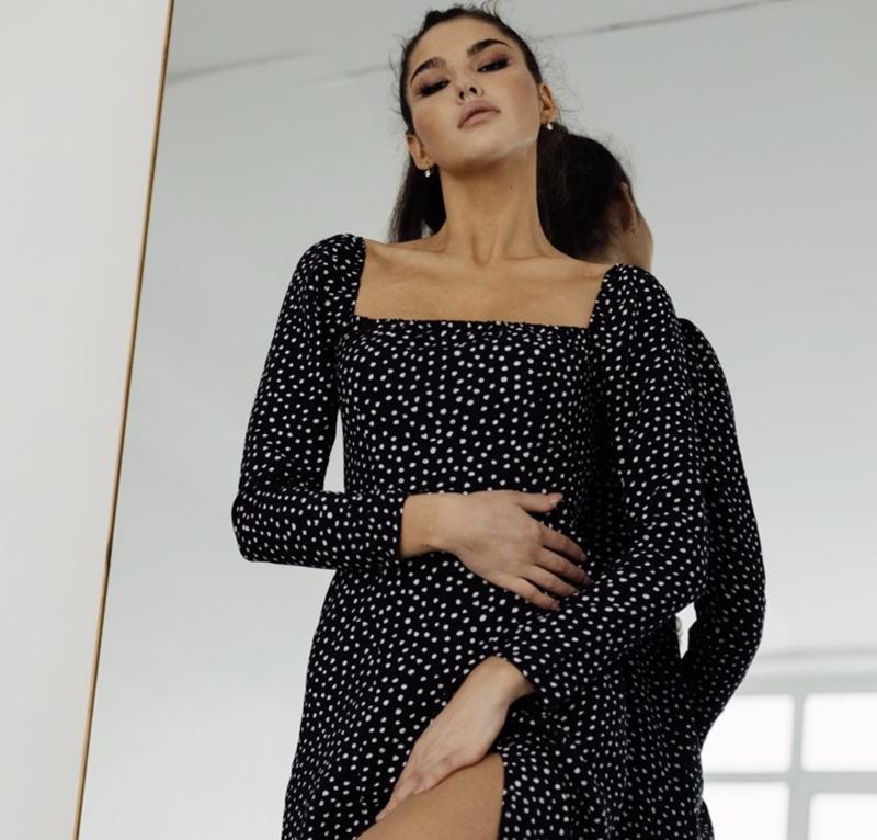 Платье в горошек от O’stin, Размер S, длина платья 82 см длина рукава 58см, полу обхват талии 35см. Новое!