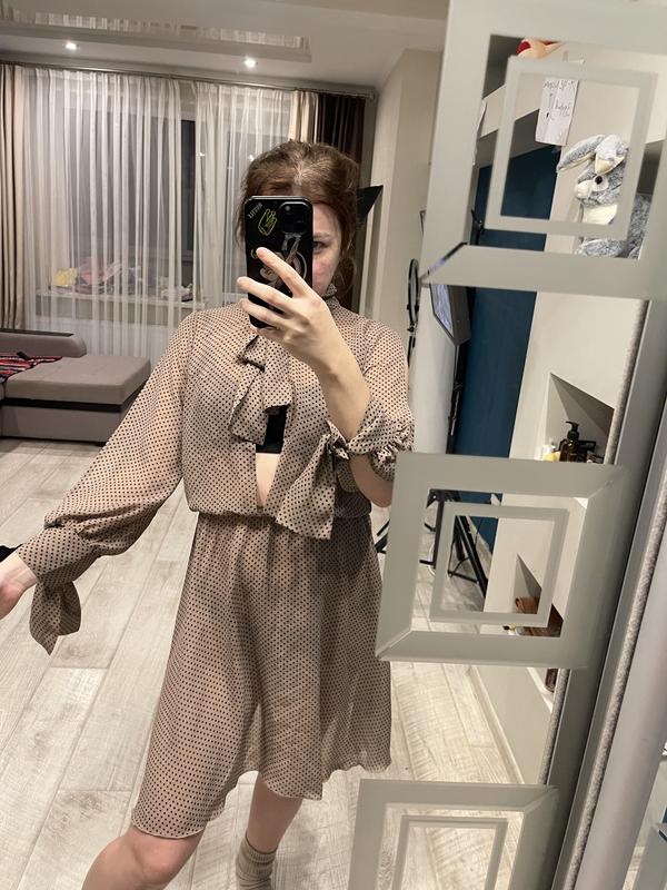 Мини платье беж в горошек