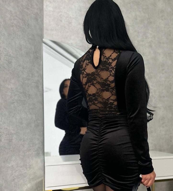 Бархатное платье с кружным облегающим кроем платье с гипюром🔥