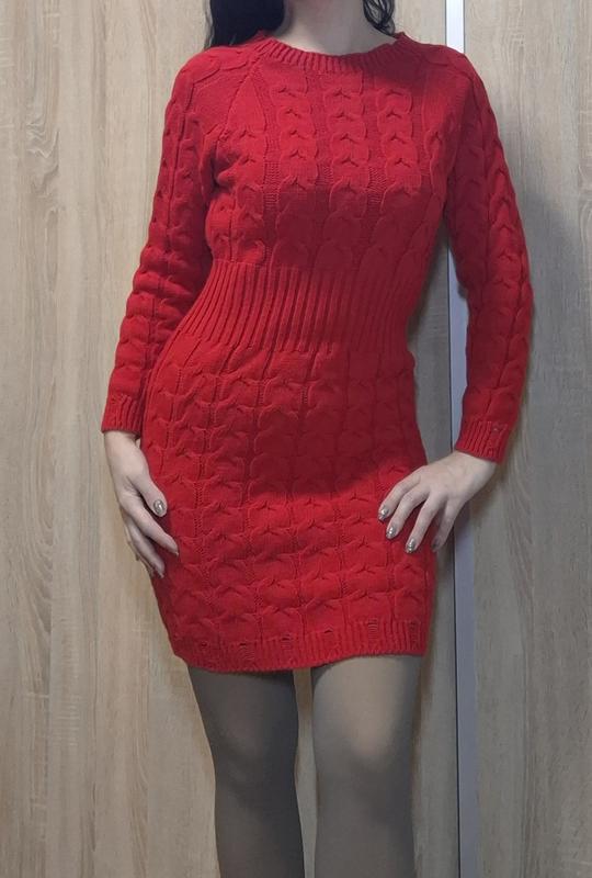 Платье туника красного цвета. 36р (S) Тканина акрил, не кошлатиться. В идеальном состоянии. Длина изделия 85см, объем груди 80см, обхват талии 66см, длина рукава 60см.