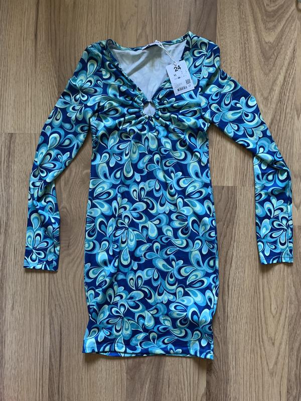 Платье с принтом бирюзовое мини jennyfer голубое синее зеленое в огурцы
