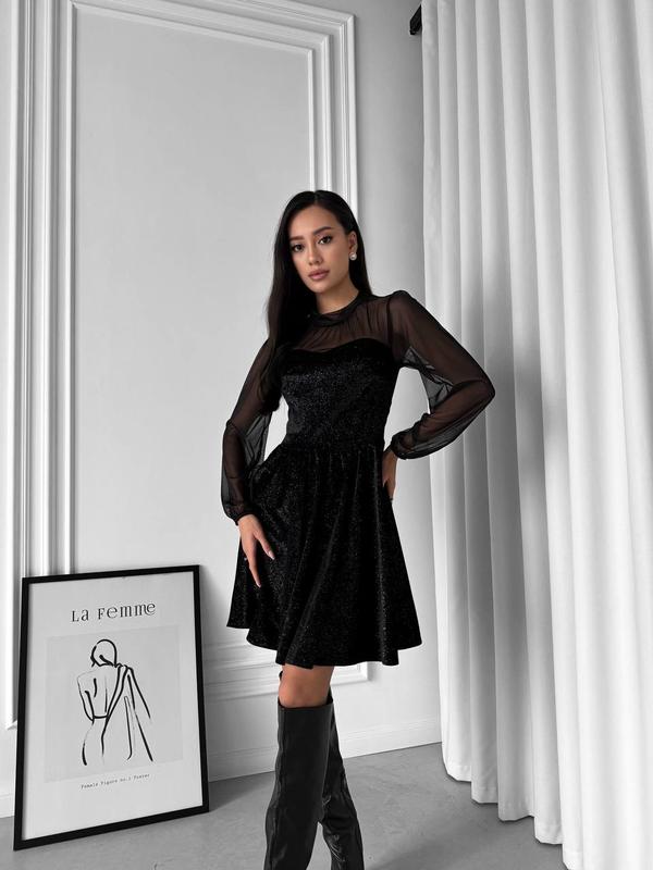 Модель 5482 Женское платье Размерный ряд S,M,L,XL Ткань бархат с напылением и сеточка Очень красивая и нарядная модель Застегивается по спинке на пуговицу Супер качество