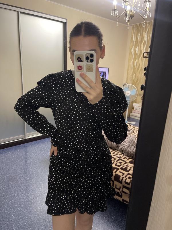 Продам плаття чорне в горошок, нове, розмір S, довжина плаття 83 см, довжина рукава 68 см