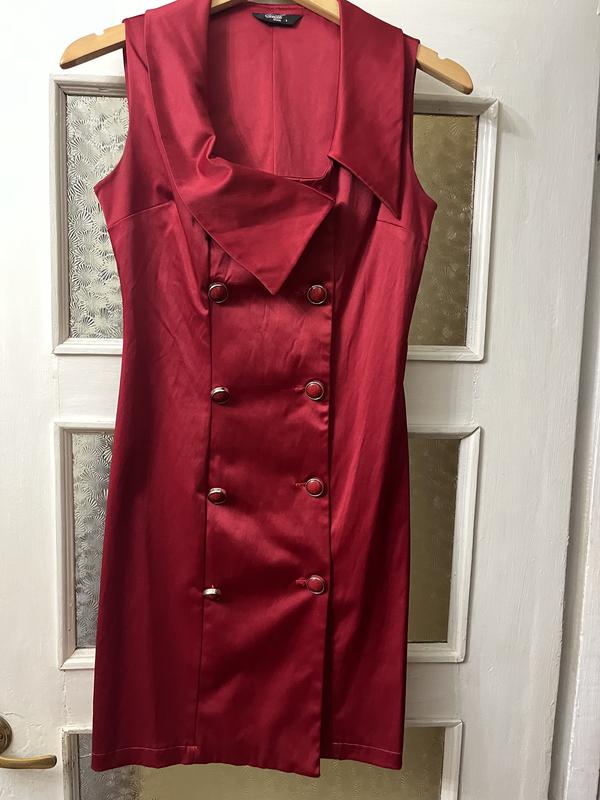 Платье атлас твердое, насыщенное красный ближе к бордовому. Размер S, состояние идеал