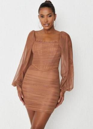фектна корсетна сукня misguided Нова з біркою Виглядає на тілі шикарно та стильно, рукава прозорі сіточкою. Підкреслює фігуру, виділяє сіднички. За рахунок корсету та складочок, не видно животик. Розмір: UK8 XS S Груди: 70 тягнеться Талія: 56 тягнеться на 65 і більше добре Довжина: 77 Довжина рукава: від грудей: 54 Пісочна коричнева мокко шоколадна бежева Свято новий рік день народження дружка випускний святкова корпоратив