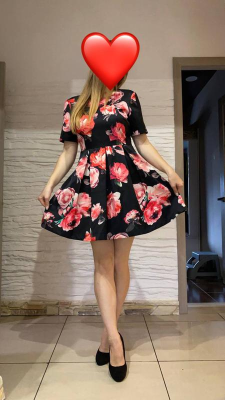 Очень красивое платье с интересным, ярким принтом. Идеально на размер М. На фото модель ростом 172 см и носит размер М.