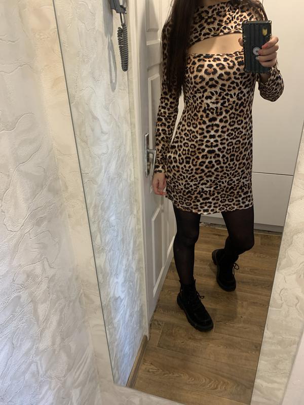 Платье миди с вырезом на груди леопардовый принт