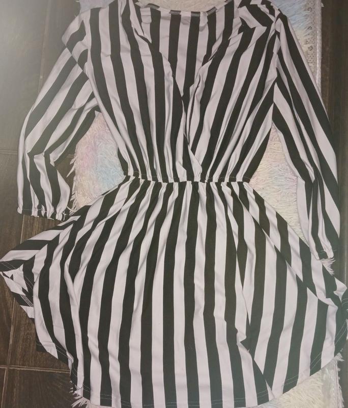 Мини платье в полоску с глубоким декольте и рукавом в три четверти на резинке. m-xl.