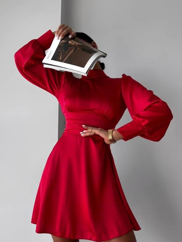 платье красное с длинным рукавом, сзади завязка бантик,ткань шелк армани,размер 42-44
