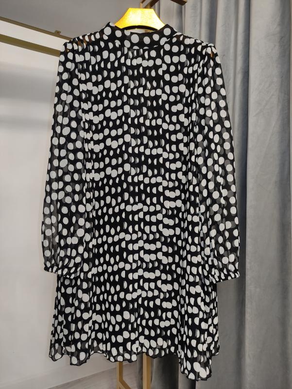 Шифоновое платье плиссе в горох горошек. Подойдет на С-М. Сзади шеи связывается на бант. Состояние отличное, есть две микро зацепки на ост.фото. Отпрашиваю НП после оплаты на карту Приватбанк, наложенным по предоплате или безопасной оплатой