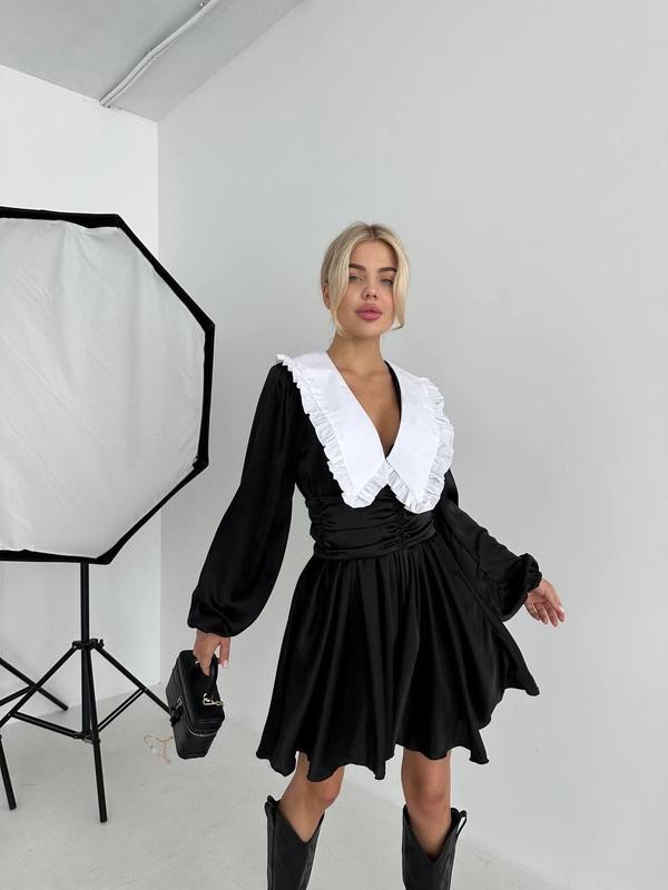 🔹Размер: 42-44, 44-46 🔹Цвета: черный 🔹Тканина: шовк + котон Наше хит - шелковое платье с пышной юбкой и широким поясом. Для самой нежной тебя🥰 Качественный шелк армани, средней плотности, пояс на пуговицах, для регуляции на разную талию. Удлиненный воротничок - все детали максимально учтены, для завершенности данной модели.
