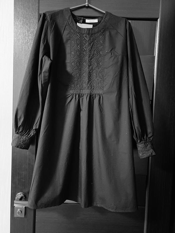 Платье трапециевидного кроя, с длинными рукавами с манжетами.. ПОГ 60, ПОТ 56, длина 90.