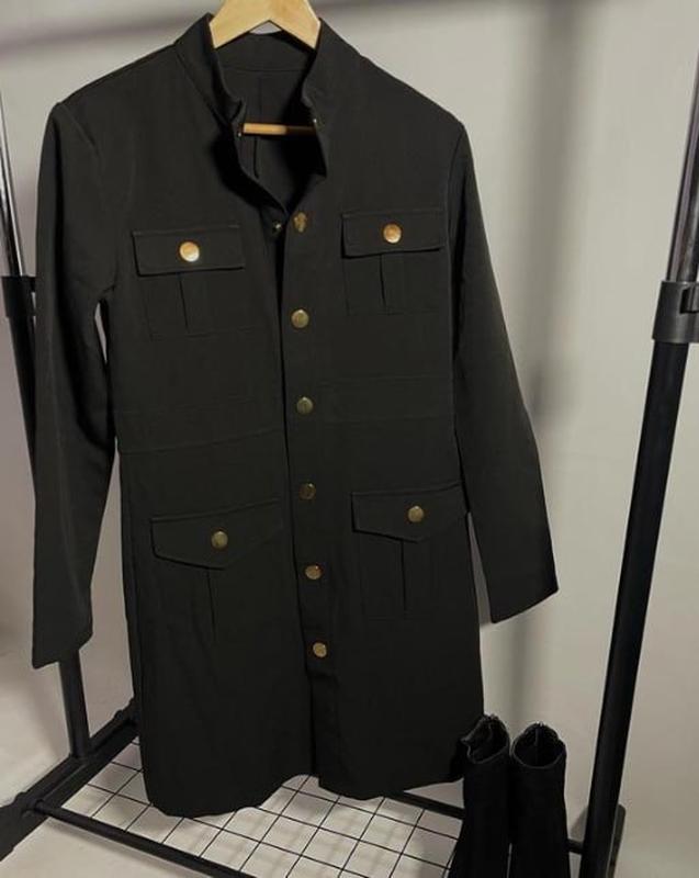 Сукня піджак в чорному кольорі та з золотими гудзиками