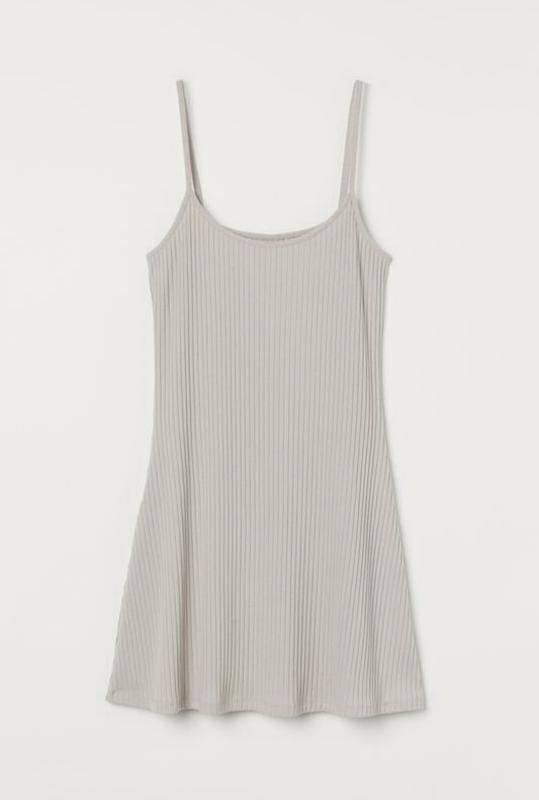 Базовре платье в рубчик фирмы H&M. Цвет светлый беж. Размер М. Замеры: длина 68 см( обители 14 см), подмышки 42 см, ширина внизу 70 см. Состояние идеальное!