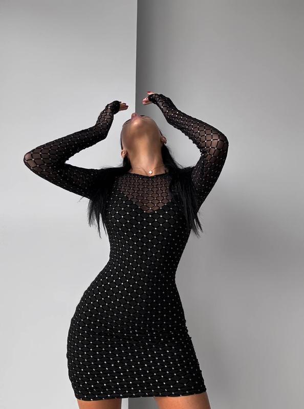 Новинка Сукня🤩 Размер: 42-44, 46-48 Ткань: микродайвинг+сетка Цвет: черный Роскошная жемчужина новой коллекции - платье, в длине мини😍 Подойдет на любое событие❤️