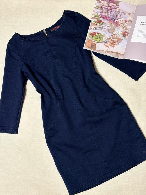 Стильное коттоновое платье Tom Tailor,темно-синего цвета.Застегивается на молнию, по спинке, что придает ему особую нотку кокетства👌Рукавчик 3/4.Ткань стрейчевают, за счет чего,хорошо корректируется фигурка☝️Размер указан L, подойде и на М,ориентируйтесь на замеры.Длина 84 см,обх/грудей 88 см шестнадцатинально не забывайте,ткань тянется🙌atch, длина/перчатка 47 см. Классно смотрится и с классической обувью и кожаными кедами, кроссовочками👌👗Стан идеален, как новая!