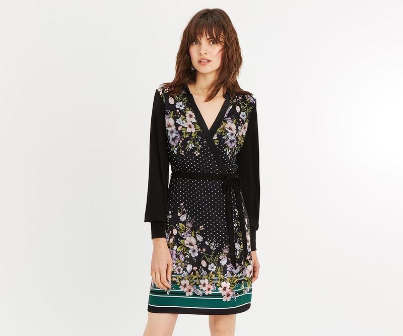 Перед сделан из шифона (не прозрачный), сзади материал вискоза, хорошо тянется. Плечи- 40см, ПОГ- 45 см, ПОТ- 36 см, завязывается на пояс, ПОБ- 48 см, длина рукава- 65 см, длина платья- 88 см, спинка, рукава и пояс из трикотажа.