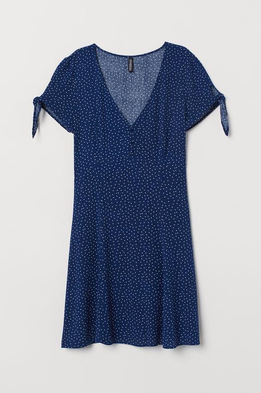 СУКНЯ с V-образным вырезом ЦВЕТ: Темно-синий/Плестный Короткое платье из мятой вискозы с узором, V-образным вырезом и декоративными пуговицами вверху. Короткие рукава с завязкой, швом на талии и юбка клеш. Без подкладки. ст. No:********** размер: Рукав: длина: 15,2 см (размер 10), спина: длина: 82,5 см (размер 10), плечо: ширина: 38,0 см (размер 10) Длина: Короткий Длина рукава: Короткий рукав Декольте: V-образный вырез описание: Темно-синий/белый, пятнистый Концепция: РОЗДІЛЕНИЙ СКЛАД Вискоза 100%