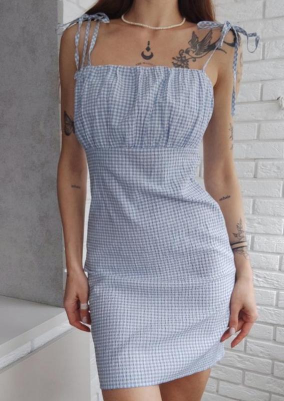 Сукня сарафан на зав'язках силуетного крою. Збоку на молнії. Стан ідеальний, 61% котон, 38% поліестер, 1% еластан Розмір 38/М заміри: довжина 74 см, груди 42 см, талія 36 см, стегна 48 см