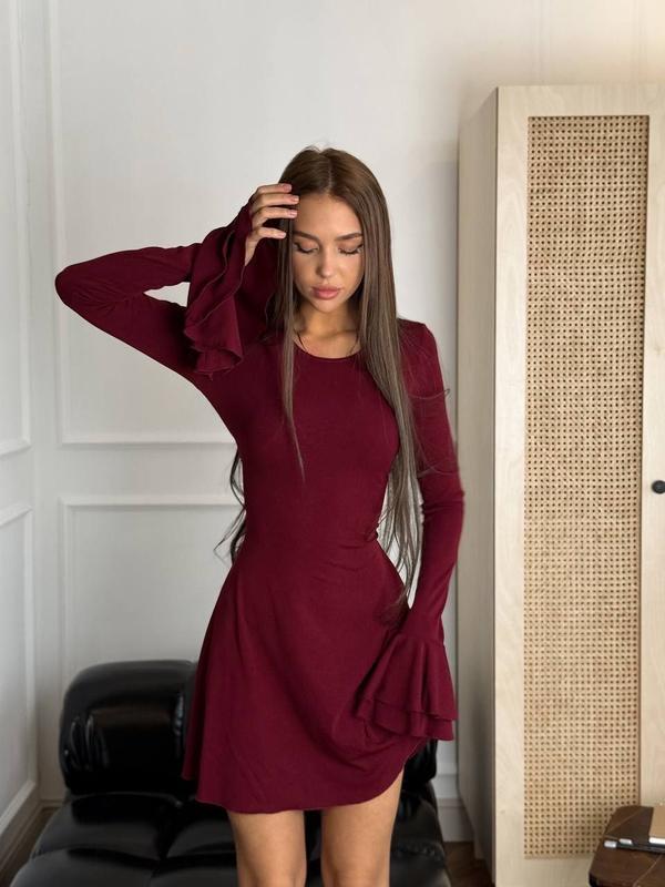 📝Арт: 1521-1186 Сукня ▫️Тканина - трикотаж масло ▫️Размеры - 42-44 и 44-46 ▫️Цвета - черный, бордо Идеальное платье в трендовых цветах на любой случай Очень стильная и эффектная, объемные рукава воланчики Сзади регулируется шнуровкой