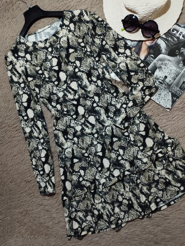 В идеальном состоянии. Красивое платье с рюшами и юбкой солнце клеш. Ткань легкая, приятная, тянется. Размер 10/38/М, но смотрите по замерам Замеры (полуобхват): Грудь 43 (тянется до 52) Талия 39 (тянется до 49) Бедра 51(тянется до 60) Рукав 60 Длина от плеча 88