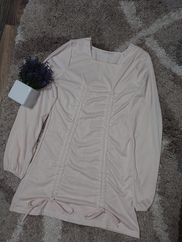 Красивое платье с завязками. Размер s-m.Колир светлый беж.Новая