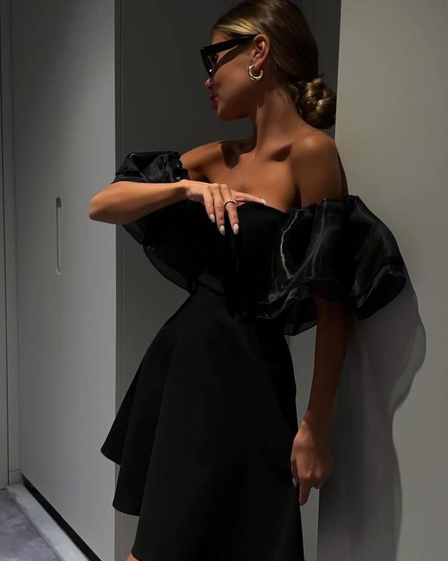 Новинка🥰 Сукня Модель: 246-42 Розмір: 42-44, 46-48 Колір: чорний Тканина: креп дайвінг + органза Ціна: 790грн Лялькова сукня, у довжині міні, максимально ніжний та жіночий силуєт❤️