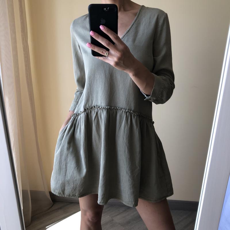 Качественная ткань, выглядит как лён Размер S-M Параметры: Пог 49 Рукав 48 Длина перед 84/зад 88
