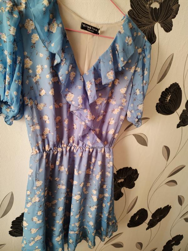 Шифоновое платье новое с подкладкой, без дефектов. Василькового цвета, цветочный принт.