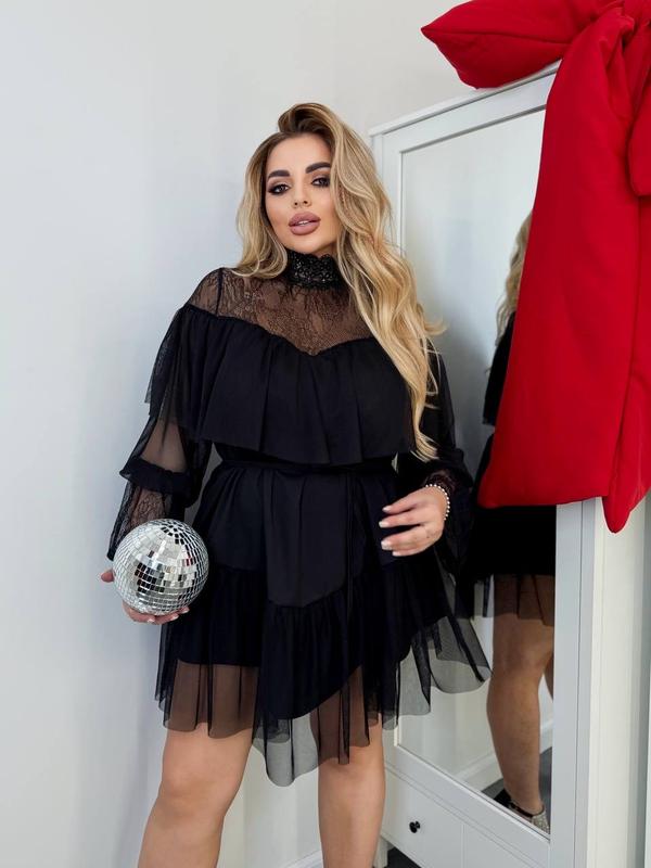 Сукня арт 7043 💥цена 1380грн Материал: софт шовк. Рукава и рюши – сетка. Вставки французского кружева. Платье свободного кроя. Добавляется поясок для приталивания. 🔹42-46: ОГ до 103, ОС до 118 см Длина 87 см 🔹48-56: ОГ до 120, ОБ до 130. Длина 90 см 🔹58-62: ОГ до 140, ОБ до 156. Длина 90 см