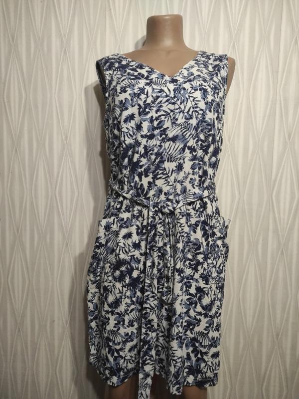 Натуральное симпатичное платье без дефектов, под поясок, карманы. Длина от плеча 94см.+- п/о груди подмышки 51см. п/о талия 51см.+- п/о бедра 56см.