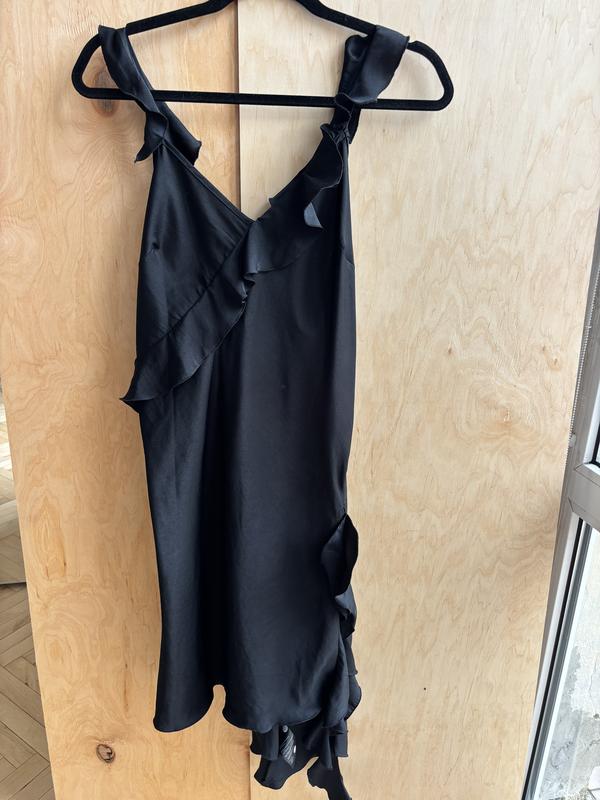 сукня нерівного крою, дуже класне регулювання брительок, можна опускати нижче, можна підіймати вище стан хороший, є потертість тканини (фото додала)