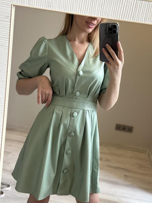 Платье зеленого цвета, размер 44. Искусственная кожа