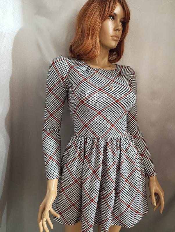 Платье сзади на молнии Юбка подвижная. Нижняя юбка имеет оборки из фатина, что делает юбку пышной и хорошо держит форму. Состав ткани: 35% коттон, 35% полиэстер, 30% вискоза. Ткань немного тянется Размер 42: ОГ 70-80 ОТ 65-80 (на резинке) Ширина плечей 33 Длина рукава от плеча 58 Длина до талии 40 Длина платья 79