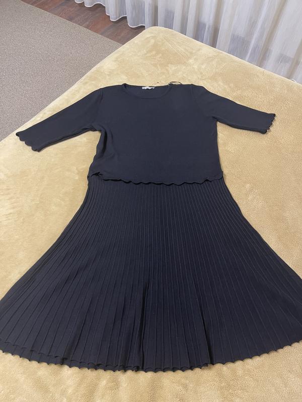 Новое без бирки трикотажное платье известного бренда, интересное комбинированное дизайн, рукав длиной до локтя с хорошо обработанным низом,по талии идентичная отделка, верх гладкий, юбка будто плисрована, скрывает широкие стэна, выглядит очень эффектно. Трикотаж мягкий, плотный, не толстый, но достаточно теплый. Очень качественный, приятный к телу.