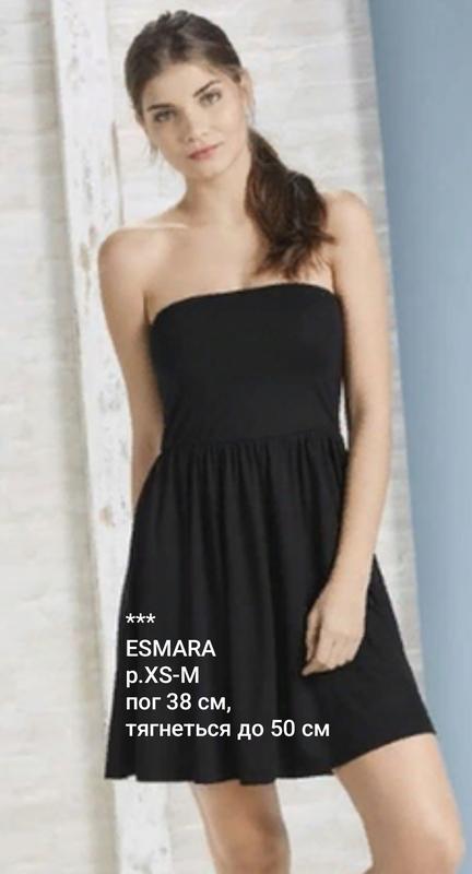 Элегантное платье, сарафан, юбка от Esmara для любого времени года и события Это стильное платье от Esmara станет незаменимым в вашем гардеробе. Ее универсальный дизайн и комфорт делают ее идеальным выбором для любого события. Характеристики: * Размер: Подходит для размеров S/M * Цвет: Классический черный, что подчеркнет любую фигуру * Фасон: Без бретелей, эластичная верхняя часть для идеальной посадки, юбка с легкой драпировкой для дополнительной женственности * Материал: Мягкий и приятный к телу, дарит комфорт в течение всего дня Преимущества: * Идеально подходит для летних прогулок и вечерних выходов * Классический и универсальный дизайн, который дополнит любой образ * Эластичная верхняя часть гарантирует удобную посадку и свободу движений * Юбка с драпировкой добавляет женственности и элегантности * Мягкий материал дарит приятные ощущения и сохраняет свежесть Не упустите возможность приобрести это очаровательное платье от Esmara и наслаждайтесь незабываемым в стильном образе! Замеры: пог 38 см, тянется до 50 см дв 68 см