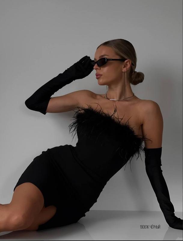 НОВИНКА 🖇Сукня 💸Цена: 1150 грн 💎Мод: 845БЛАК776 🪡Ткань: креп дайвинг, страусиные перья и лодыжки 📏Размер: 42-44, 44-46 🌈Цвет: черный Платье без рукавов