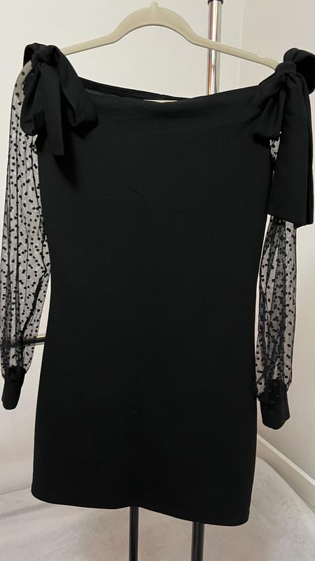 Черное приталенное платье с рукояткой-сеточкой. на плечах завʼязки. Отличный вариант на каждый день и на какое-то событие
