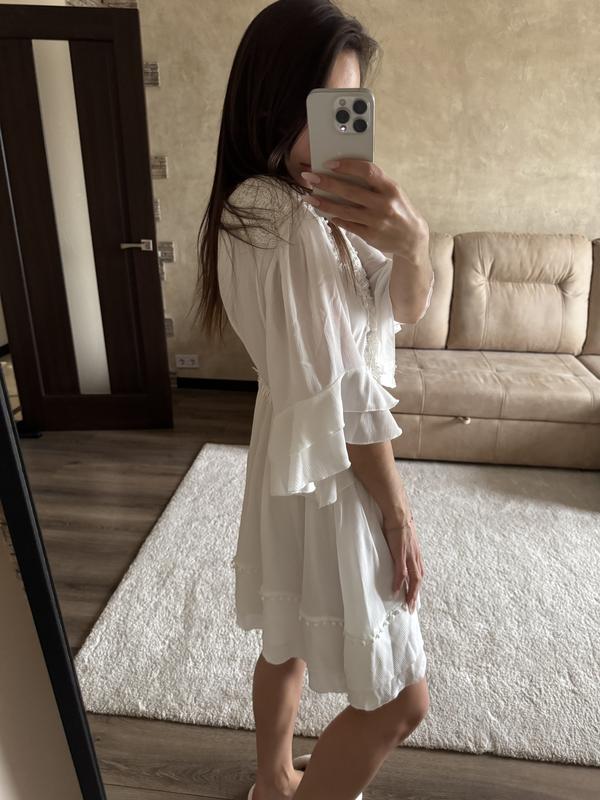 Красивое белое платье, размер S, обшитое камнями