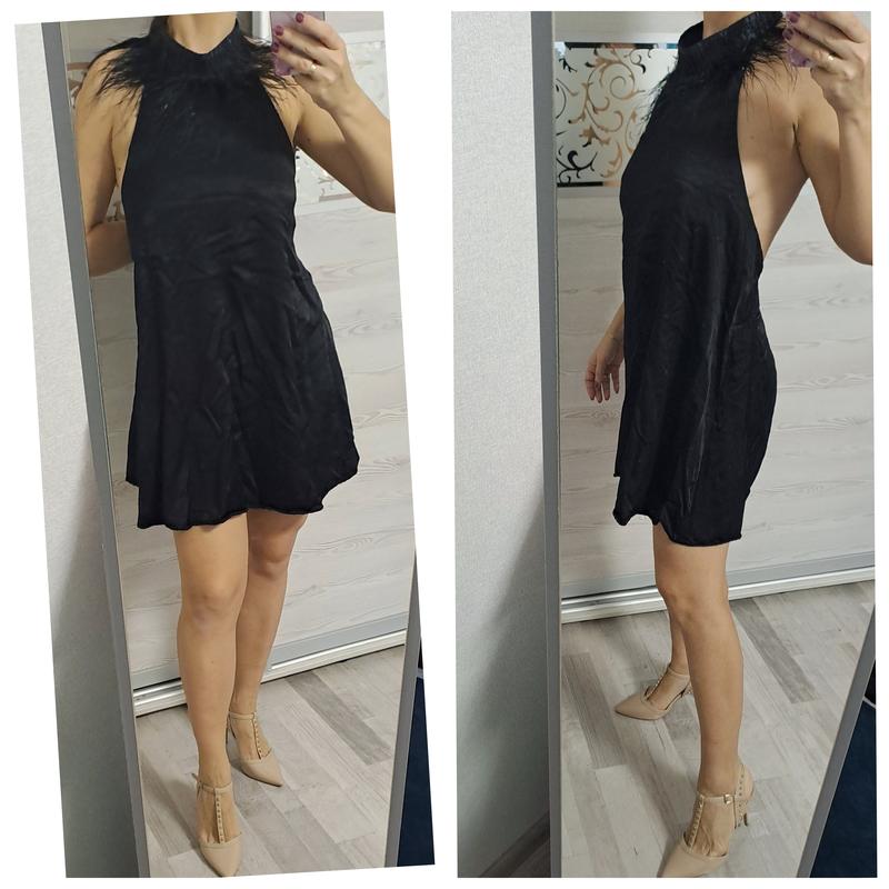 Платье вечернее черная которка с перьями на шее