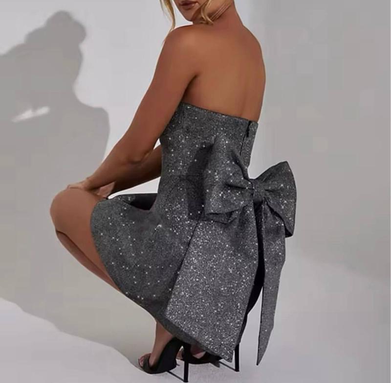 New🩶 Хит заказов💎 Платье с бантом 🔘Мод md 1107 🔘Размеры - 42-44, 46-48 🔘Цвета - серебро, графит 🔘Тканина - диско 🔘Цена 740 грн Очаровательное блестящее платье с бантом до новогодних праздников. Хорошо держится на груди и красиво подчеркивает. На спинке потайная молния. Бант пришит*