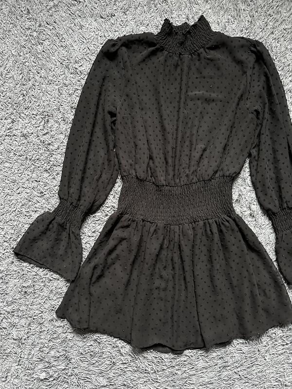 Женская черная мини-платье с длинным рукавом. Размер пишет Л, но идет на М.
