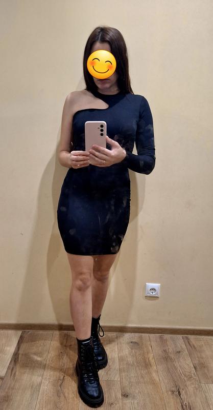 Стильное черное платье на 1 плечо б/у размер s, подойдет на xs