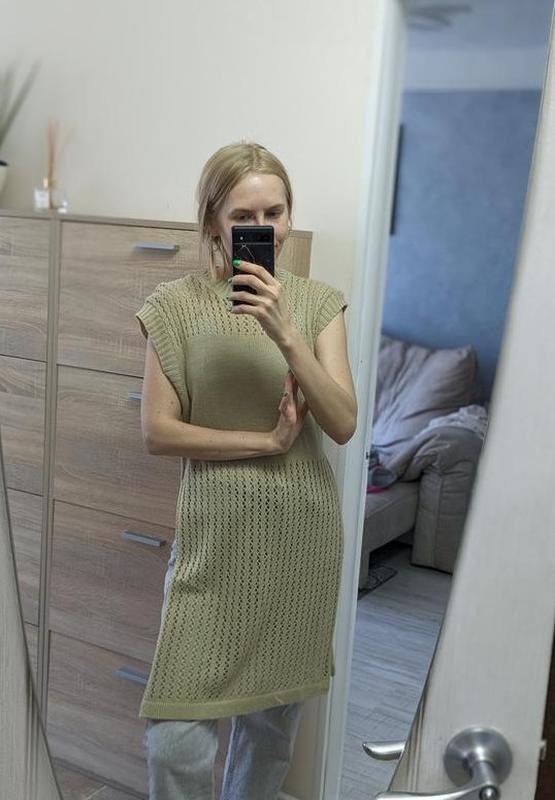 Довжина 90см, ширина по плечах разом з рукавчиком 46см, відстань між підмишками 45см, ширина внизу 52см. Вдягала 1 раз, стан ідеальний. Дуже комфортна, її можна носити на гольф чи топ.