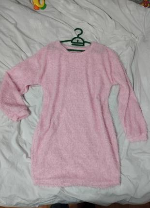 Розовое платье свитер травка