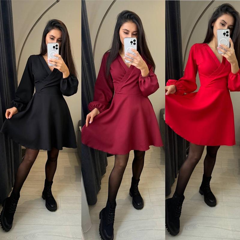 Женское платье Модель 717 Размеры: 42-44; 46-48; 50-52 Ткань: костюмное хорошее качество Цвета: красный, черный, бордо По спинке потайная молния, рукав на резинке, пояс в комплекте ✅Фото в живу