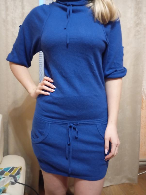 Пропоную чудову сукню-туніку з комірцєм, двома кишенями, розмір 36, заміри: ПОГ-44, довжина -94, рукав-47. Склад: 65%-віскоза, 20%-нейлон, 15%-ангора. Вона дуже м'яка і пухнаста, приємна до тіла. Не вживалась. Рукав трі четверті, можно закатить і зробить короче через застібку на гудзик. Стан нової речі.