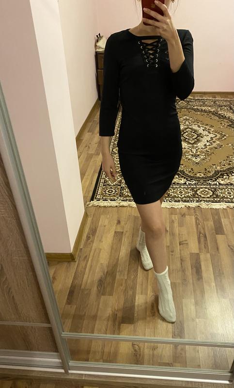 Платье темно-синего цвета, приталенное к телу четвертень рукав с плетением на груди,размер xs,s